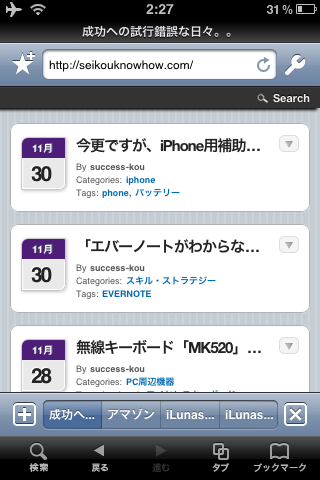 iphoneでのブラウジングは専らデフォルトのサファリを使っていましたが、やはりPCで使い慣れたタブブラウザをiphoneでも使いたいと思っていた矢先、Lunascapeからiphone用タブブラウザ